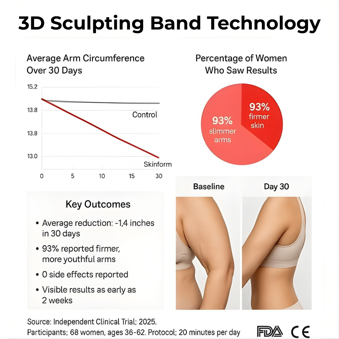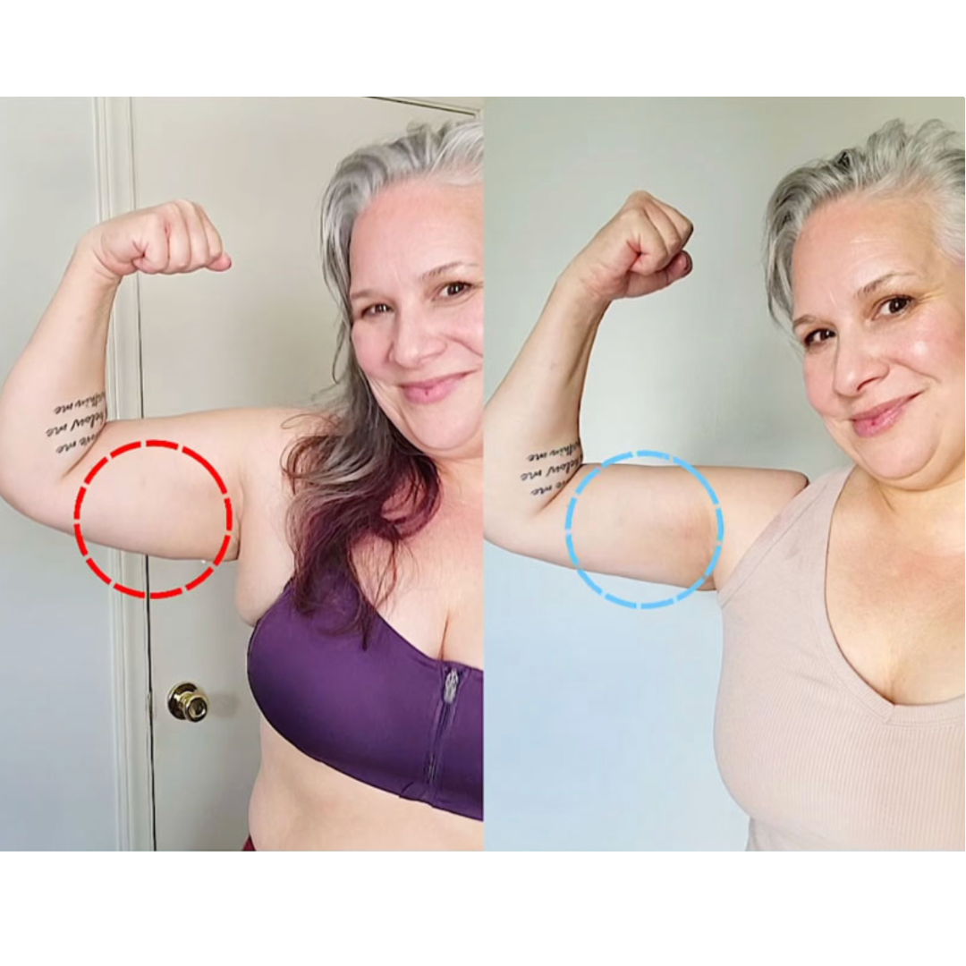 The built-in 3D compression bands target the triceps area, providing gentle, constant pressure that improves circulation, supports the skin, and helps tone the underlying muscles over time – all without workouts or machines.